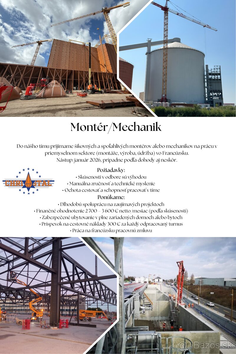Do nášho tímu prijímame šikovných a spoľahlivých montérov alebo mechanikov na prácu v priemyselnom sektore (montáže, výroba, údržba) vo Francúzsku.
