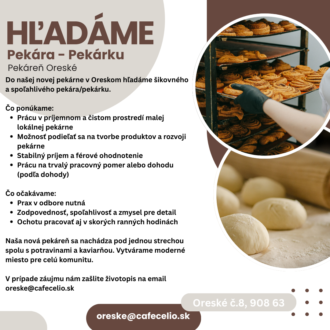 Do našej novej pekárne v Oreskom 908 63 okres Skalica hľadáme pekára alebo pekárku.