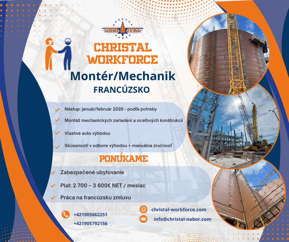 Do nášho tímu prijímame šikovných a spoľahlivých montérov alebo mechanikov na prácu v priemyselnom sektore (montáže, výroba, údržba) vo Francúzsku.