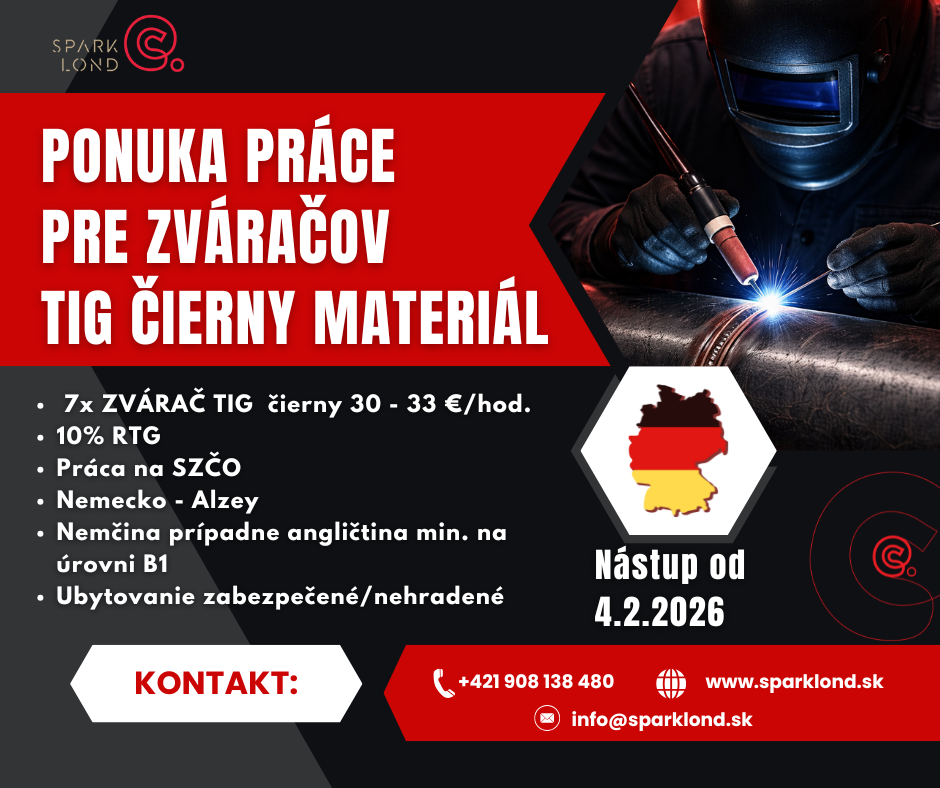 Zvárač TIG 141 - TOP - [5.1. 2026]🔧 HĽADÁME ZVÁRAČA – NEREZOVÉ POTRUBIE (NEMECKO)
