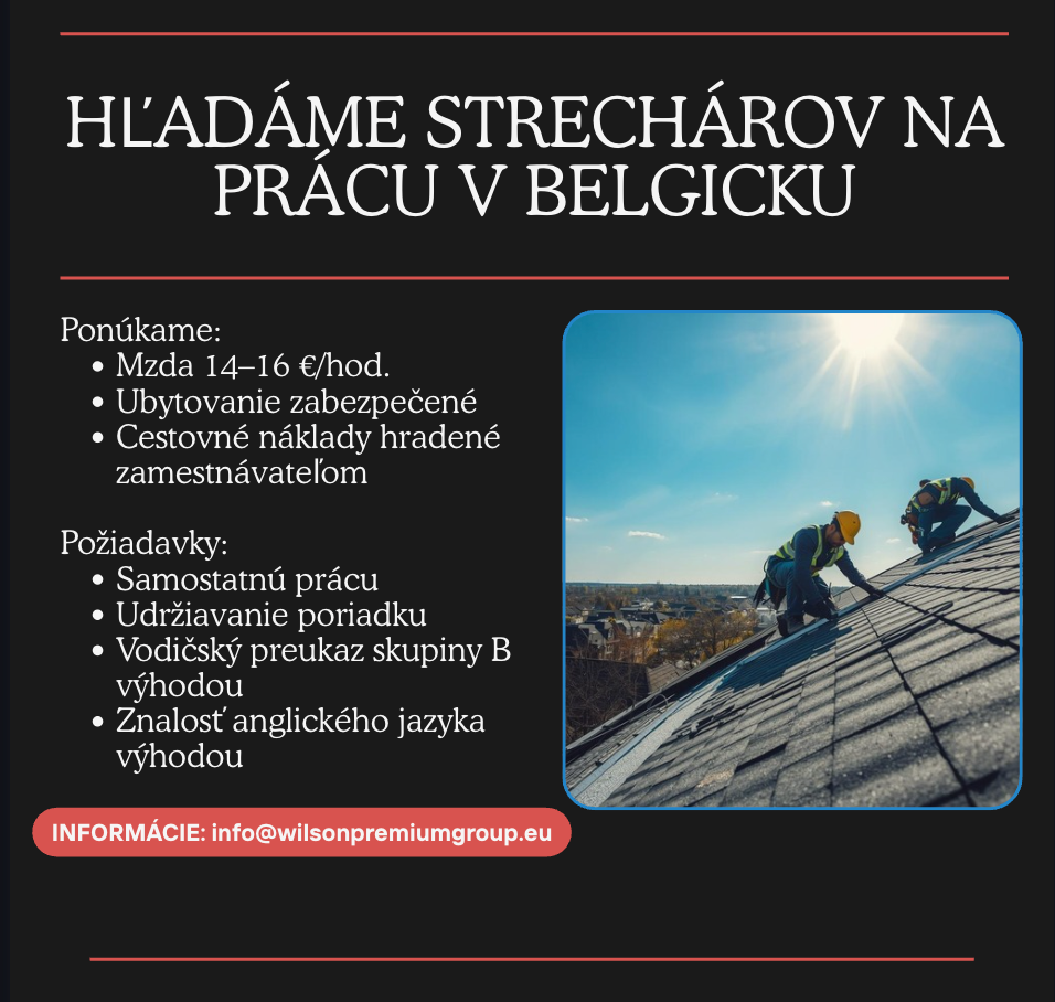 Pre stabilný projekt v Belgicku (Antwerp) hľadáme skúsených strechárov, ktorí majú prax v odbore a záujem o dlhodobú spoluprácu.