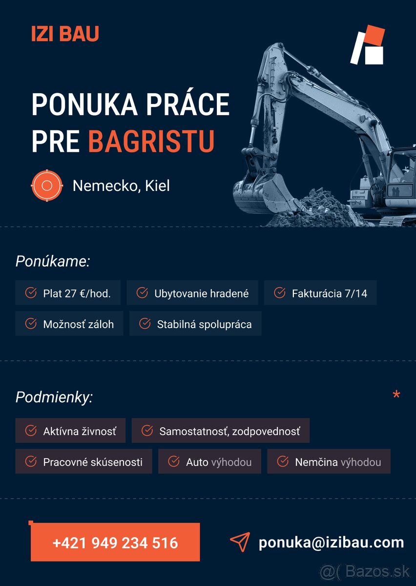 Hľadáme skúseného a samostatného bagristu na projekt do mesta Kiel.