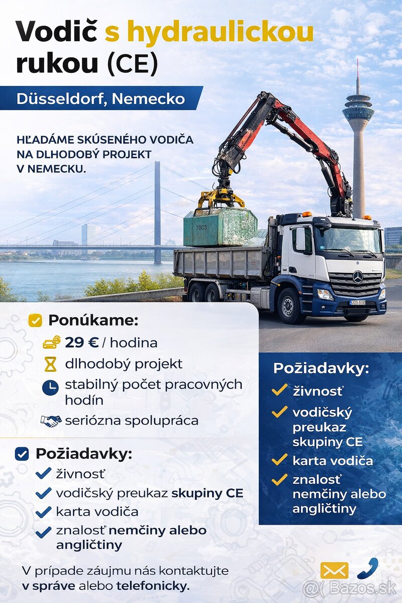Hľadáme skúseného vodiča nákladného vozidla s hydraulickou rukou na dlhodobý projekt v Nemecku.