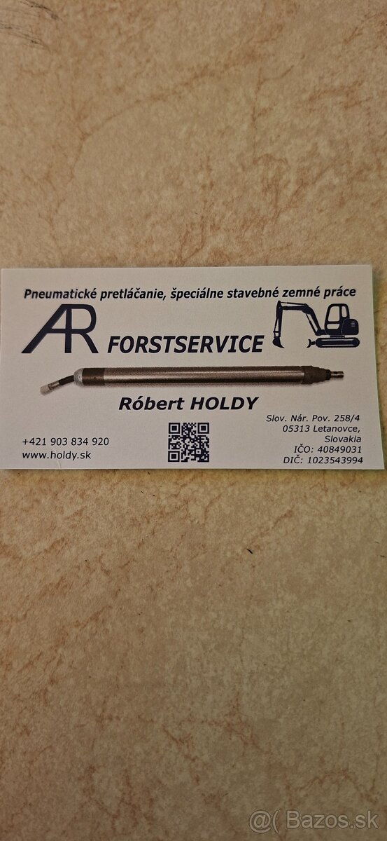 Ponúkam pneumatické pretlacanie ciest ulic na pripojenie elektriny kanalizácie vody atd v rozmeroch 95mm až 150mm zavádzanie chraniciek a ďalšie špeciálne zemné práce viac po telefone...vec obhliadky a dohody